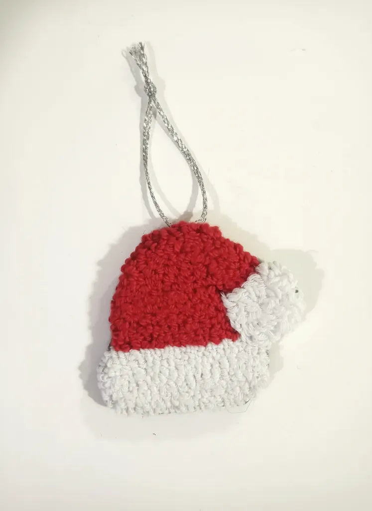Örgü Noel Baba Şapkası Duvar Süsü Kırmızı Beyaz Yılbaşı Dekorasyonu