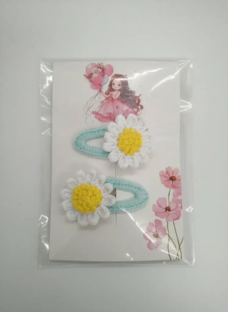 Örgü Papatya Desenli Kıskaçlı Bebek Toka El Emeği