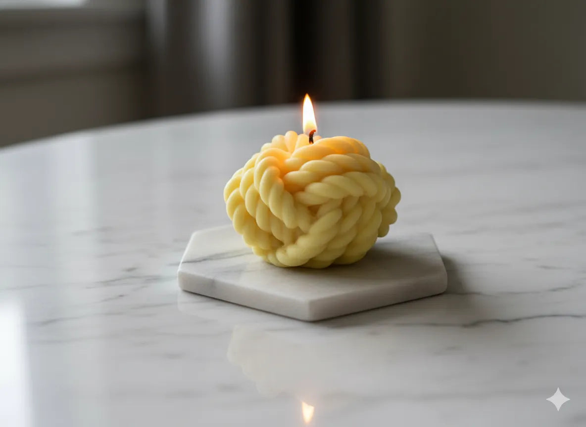 Ürün Özellikleri:Malzeme: Doğal soya wax + az miktarda parafinTasarım: Örgü top formunda dekoratif modelRenk: SarıKullanım: Dekoratif amaçlı ya da ambiyans için yakılabilirÖlçüler: Ortalama 7-8 cm çap (elde yapım nedeniyle ufak farklılık gösterebilir)