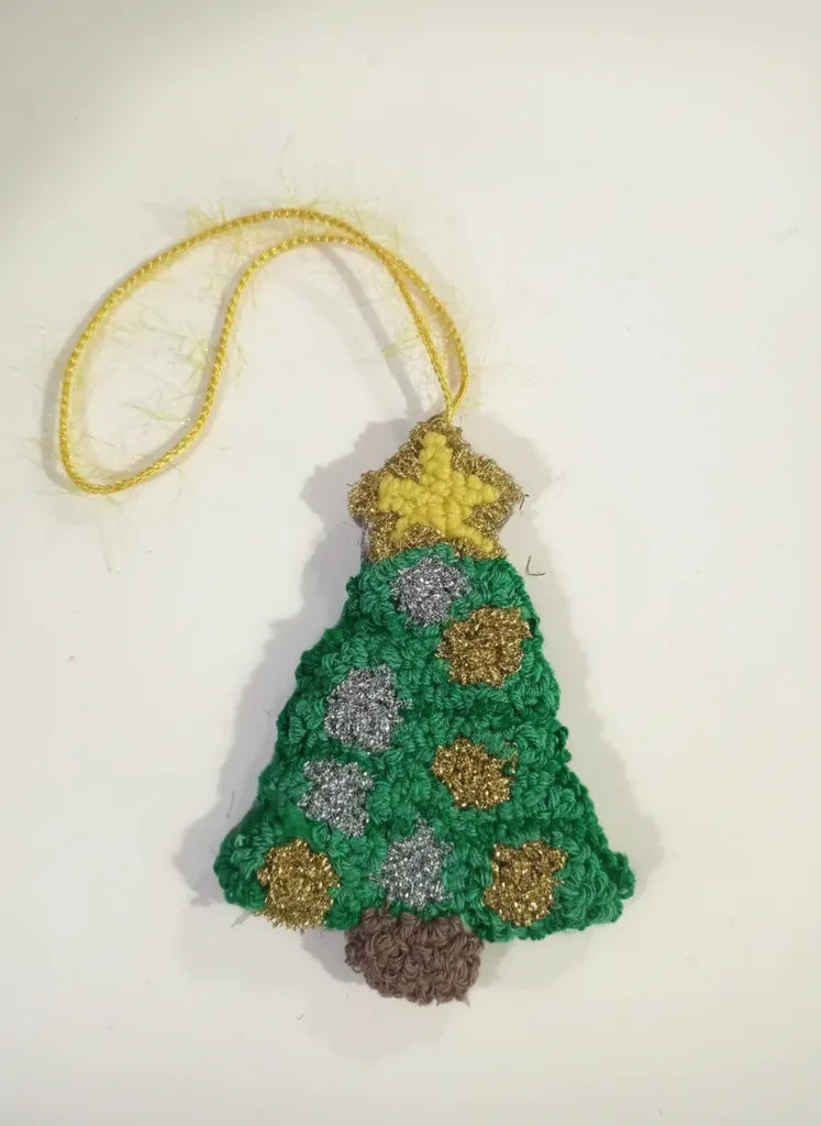 Örgü Yılbaşı Ağacı Duvar Süsü Yeşil Sarı ve Kahverengi
