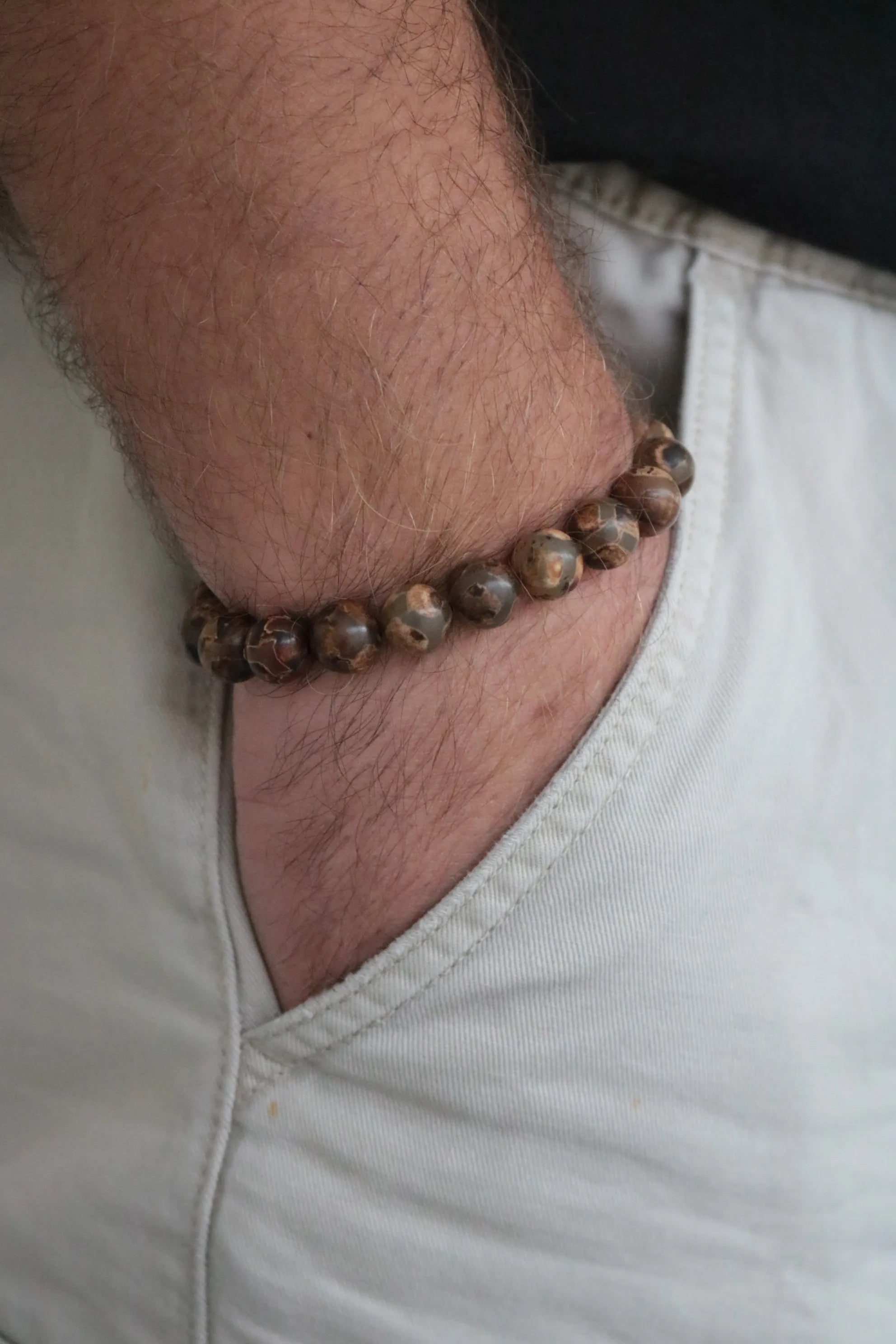 Orjinal Yeşim Taşlı Erkek Bileklik Toprak Rengi