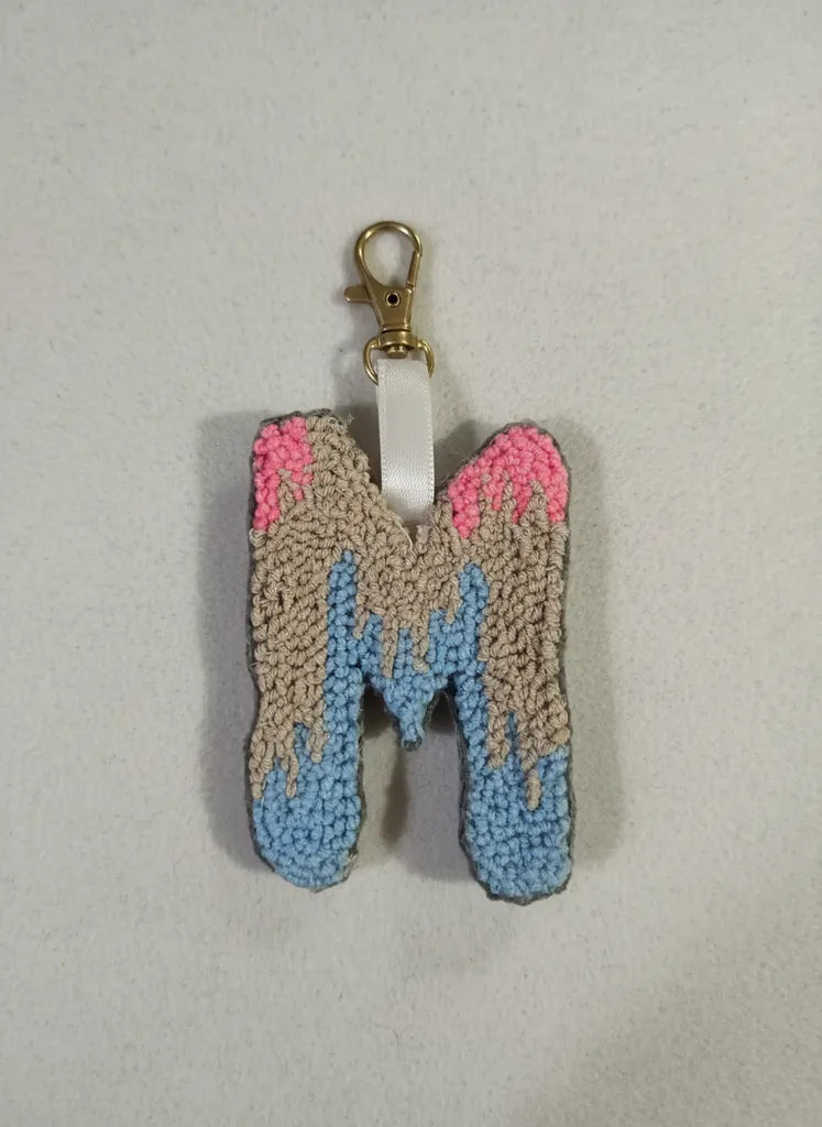 Örme M Harfi Anahtarlık Pembe Mavi ve Bej Renkli El Yapımı