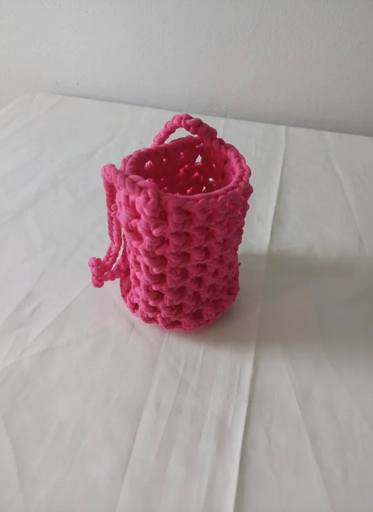 Pembe Makrome Örgü İpli Telefon Çantası El Yapımı