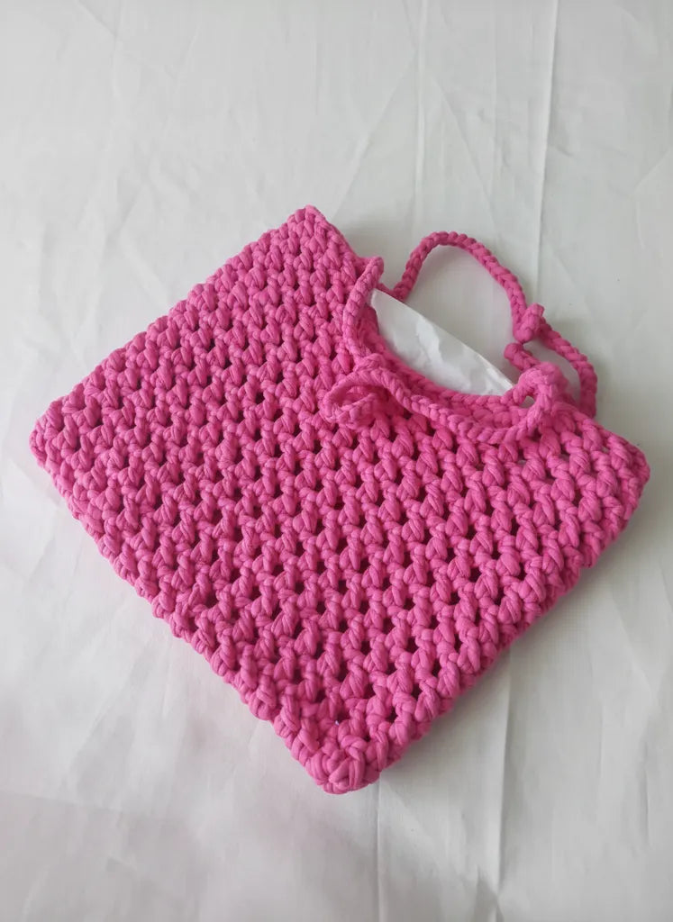 Pembe Makrome Örgü Omuz Çantası El Emeği Şık Tasarım