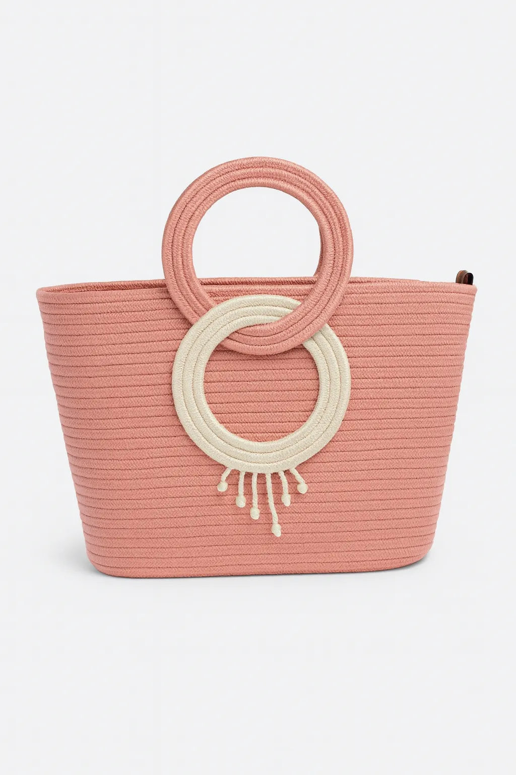 Kutu formundaki yapısıyla hem şık bir çanta hem de pratik bir valiz olarak kullanılabilen bu özel tasarım, pudra renginin yumuşak tonlarıyla dikkat çekiyor. Geniş iç hacmi ve dik duruş sağlayan formuyla hem günlük kullanım hem de seyahatlerde ideal bir eşlikçi oluyor.Boncuk detaylı halkalı sap tasarımı, çantaya zarif ve özgün bir dokunuş katarken, fermuarlı kapanışı ve iç cepli astarı sayesinde eşyalarınız güvende ve düzenli kalır. Elinizde hazır, hemen teslim edilebilir.Ürün Özellikleri:Renk: PudraMalzeme: Örgü halatForm: Kutu çanta (sert yapılı)Sap Tipi: Sabit halkalı el sapıKapanış: FermuarlıKullanım: Günlük kullanım veya kısa seyahatler için uygundur