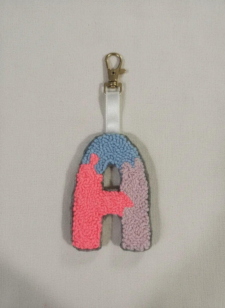 Punch Nakışı A Harfi Anahtarlık Mavi Pembe Renkli El Yapımı