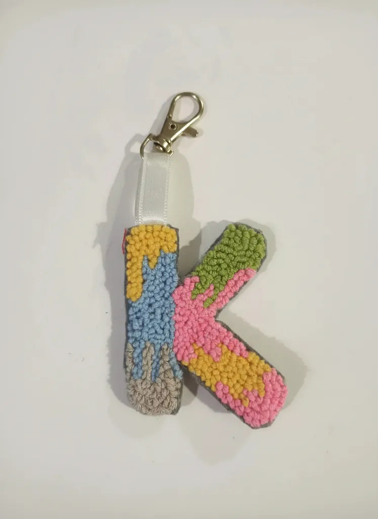 Punch Nakışı K Harfi Anahtarlık Çok Renkli ve El Yapımı