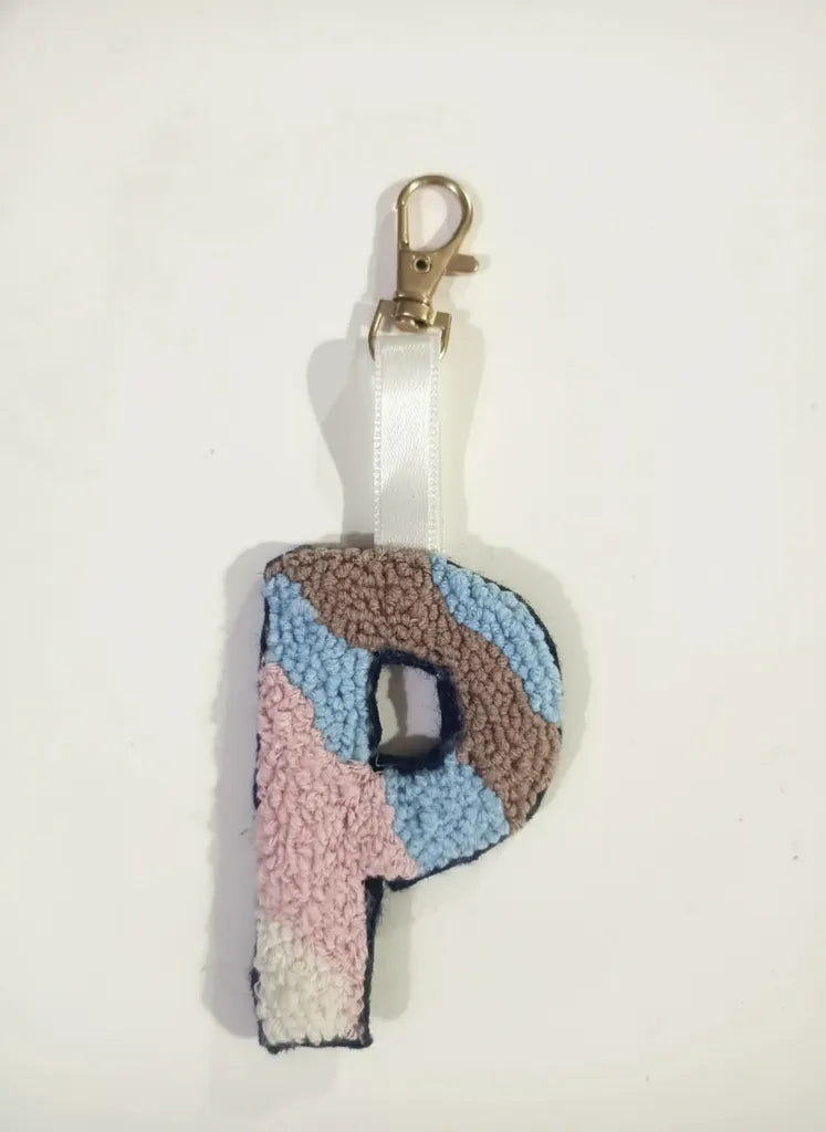 Punch Nakışı P Harfi Anahtarlık Renkli Yün İplik El Yapımı