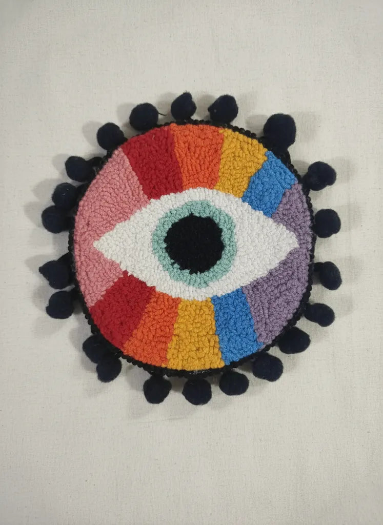 Renkli Göz Desenli Bardak Altlığı Ponpon Detaylı El Yapımı