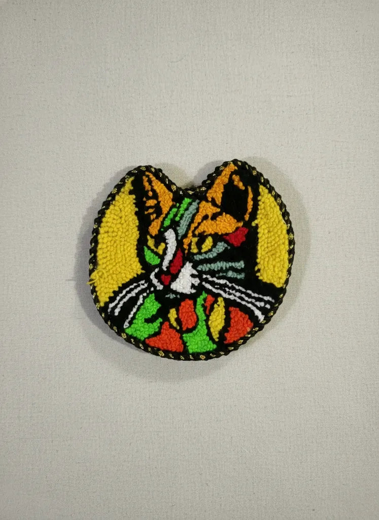 Renkli İplikten Kedi Desenli Bardak Altlığı El Yapımı Dekoratif
