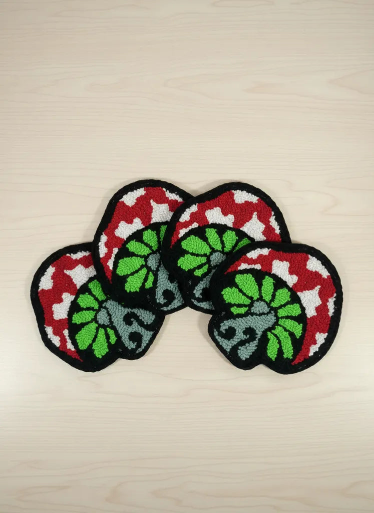 Renkli Mantar Desenli Bardak Altlığı Punch Nakışı Tekniği ile El Yapımı