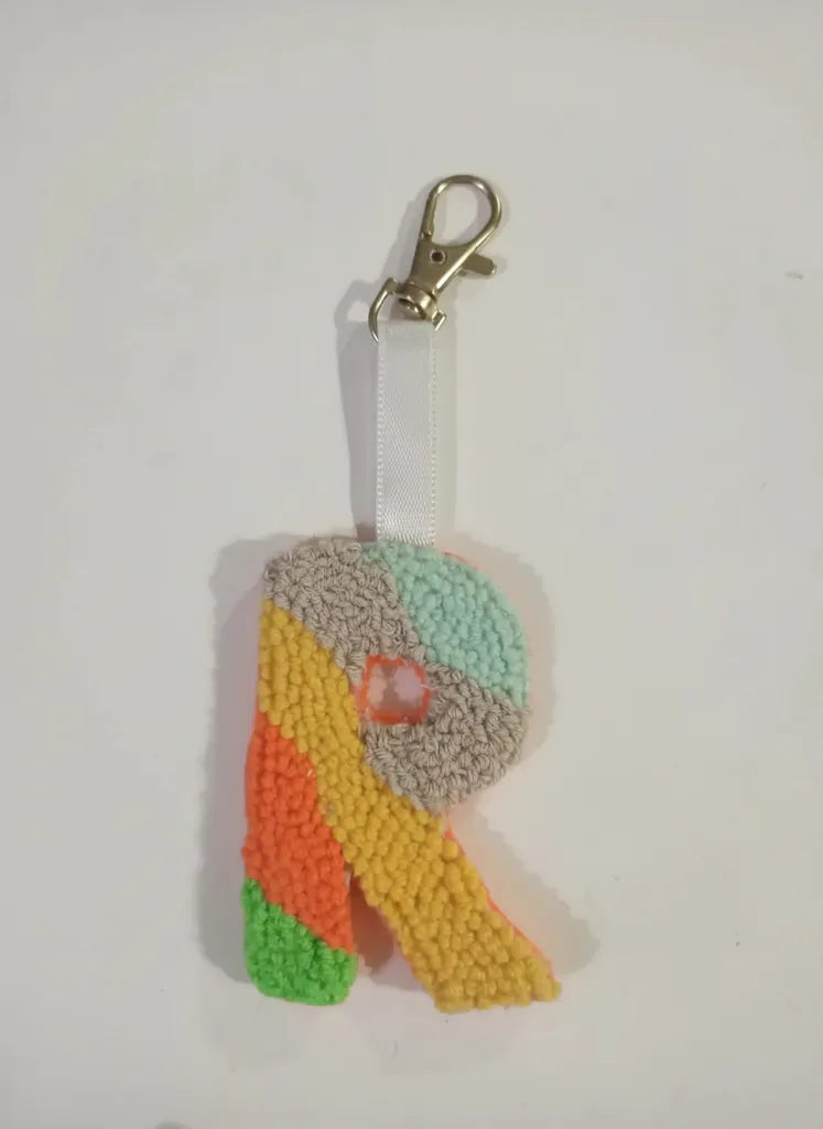 Renkli Ponpon Detaylı R Harfi Anahtarlık El Yapımı Hediye