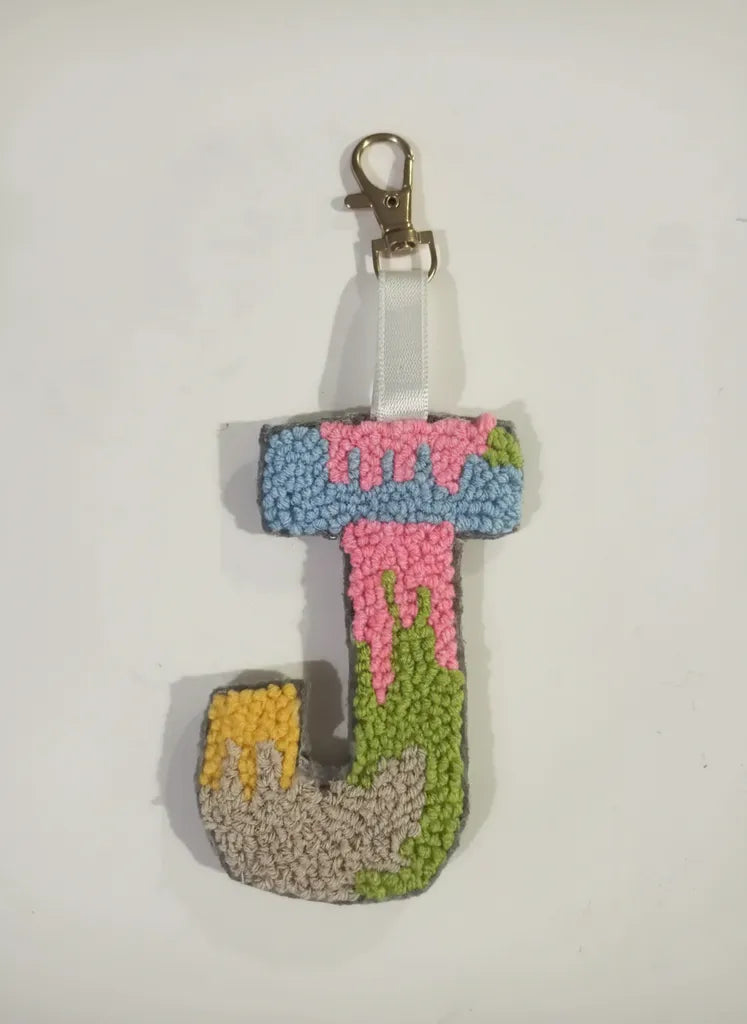 Renkli Yün İplik "J" Harfi Anahtarlık El Yapımı Dekoratif Hediye