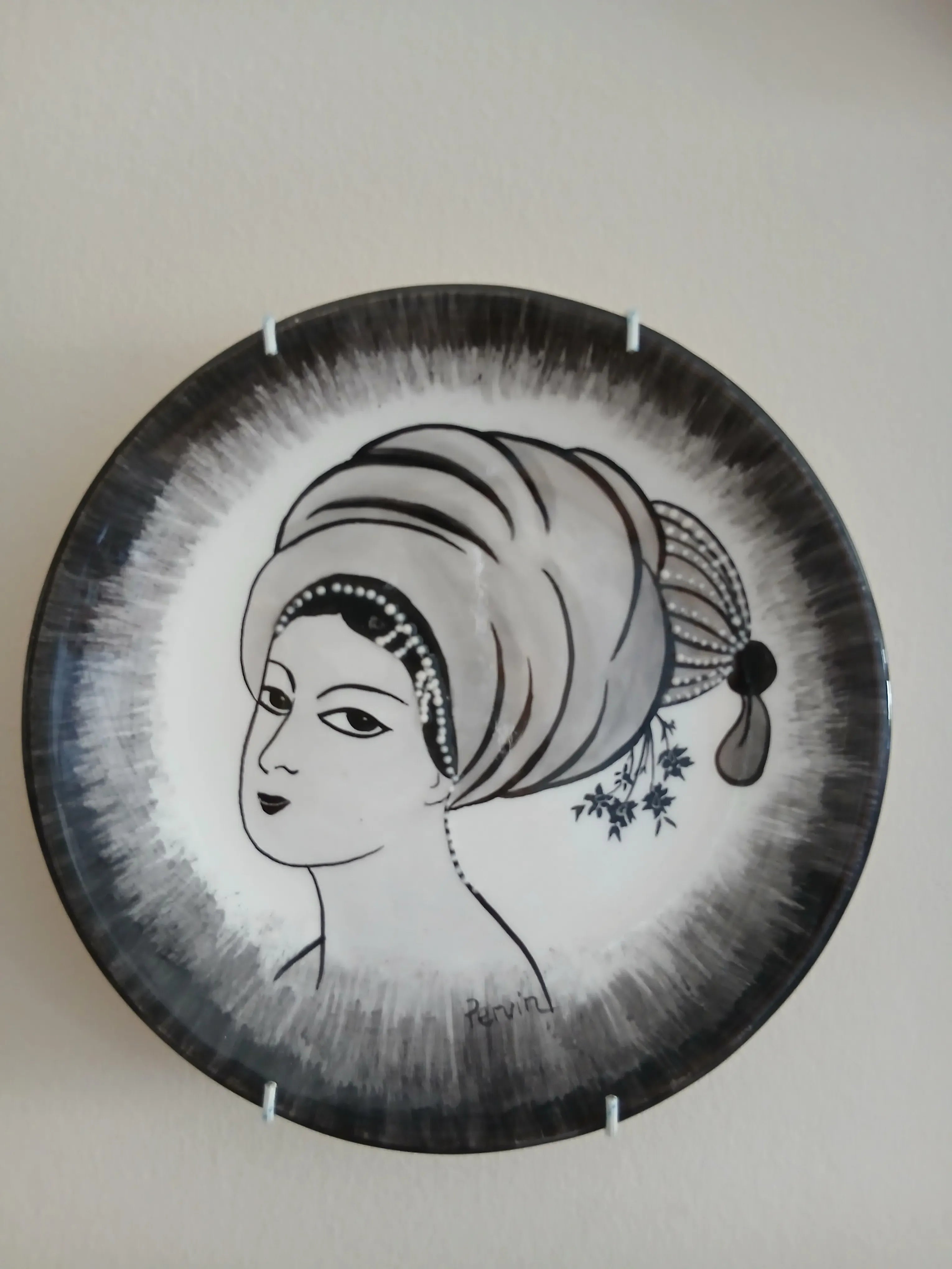 Ürün Özellikleri:Ürün Tipi: Çini duvar dekor tabağıTeknik: Sır altı tekniği ile el işçiliği dekorlama yapılmıştırEbat: 18 cmTasarım: Kadın portre figürlü, sanatsal çizimKullanım Alanı: Ev ve duvar dekorasyonu için uygundurEkstra: Duvar asma aparatı hediye olarak verilmektedir