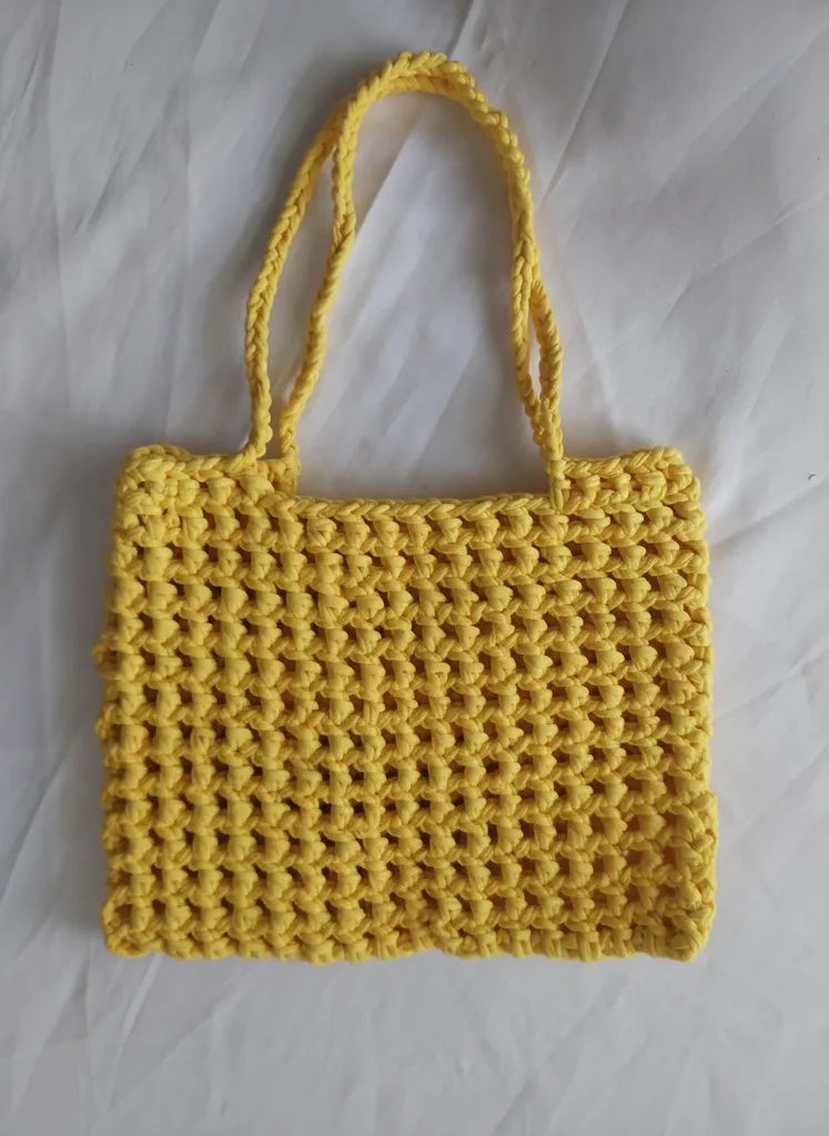 Sarı Makrome Örgü Omuz Çantası El Emeği Şık Tasarım