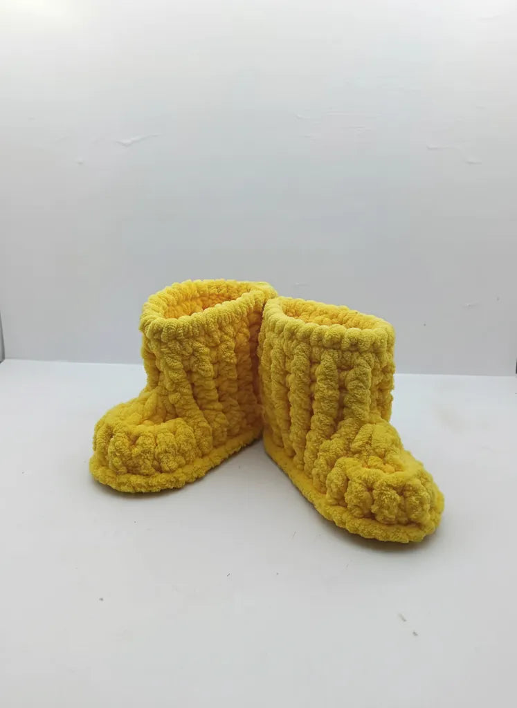 Sarı Örme Bebek Patiği Yumuşak Dokulu 1819 Numara El Emeği