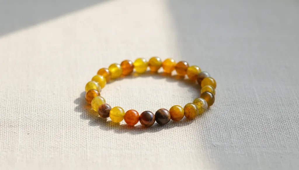 Sarı ve Kahverengi Tonlarında Yuvarlak Kesim Doğal Akik Taş Bileklik
