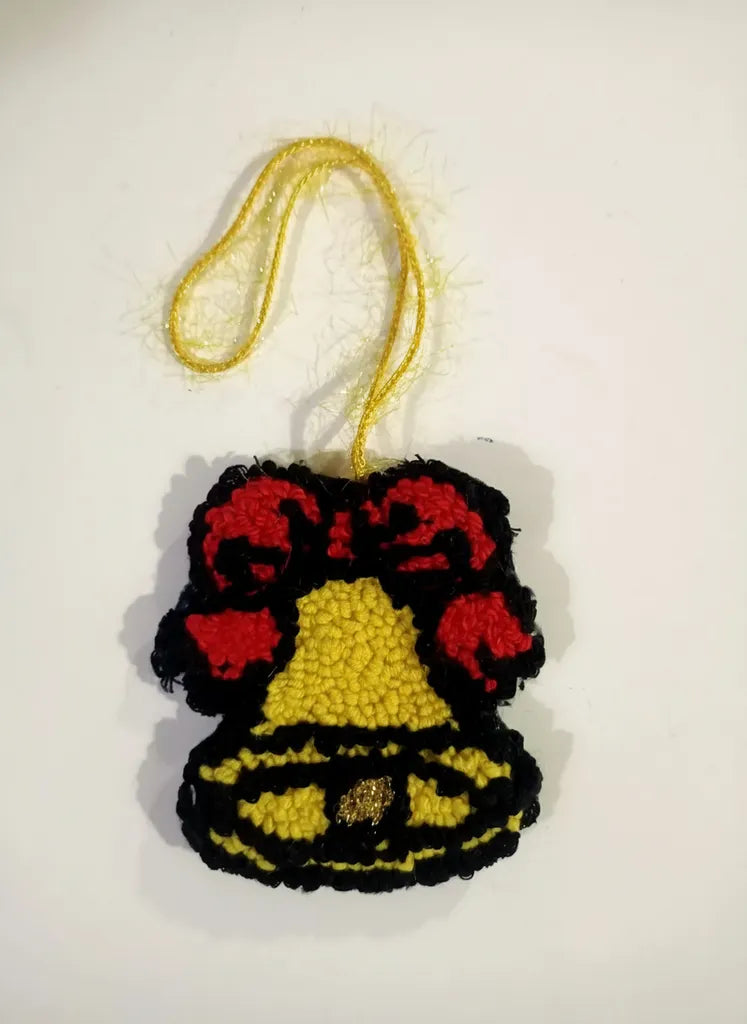 Sarı Zil Şeklinde Yün İpten Duvar Süsü El Yapımı Dekoratif