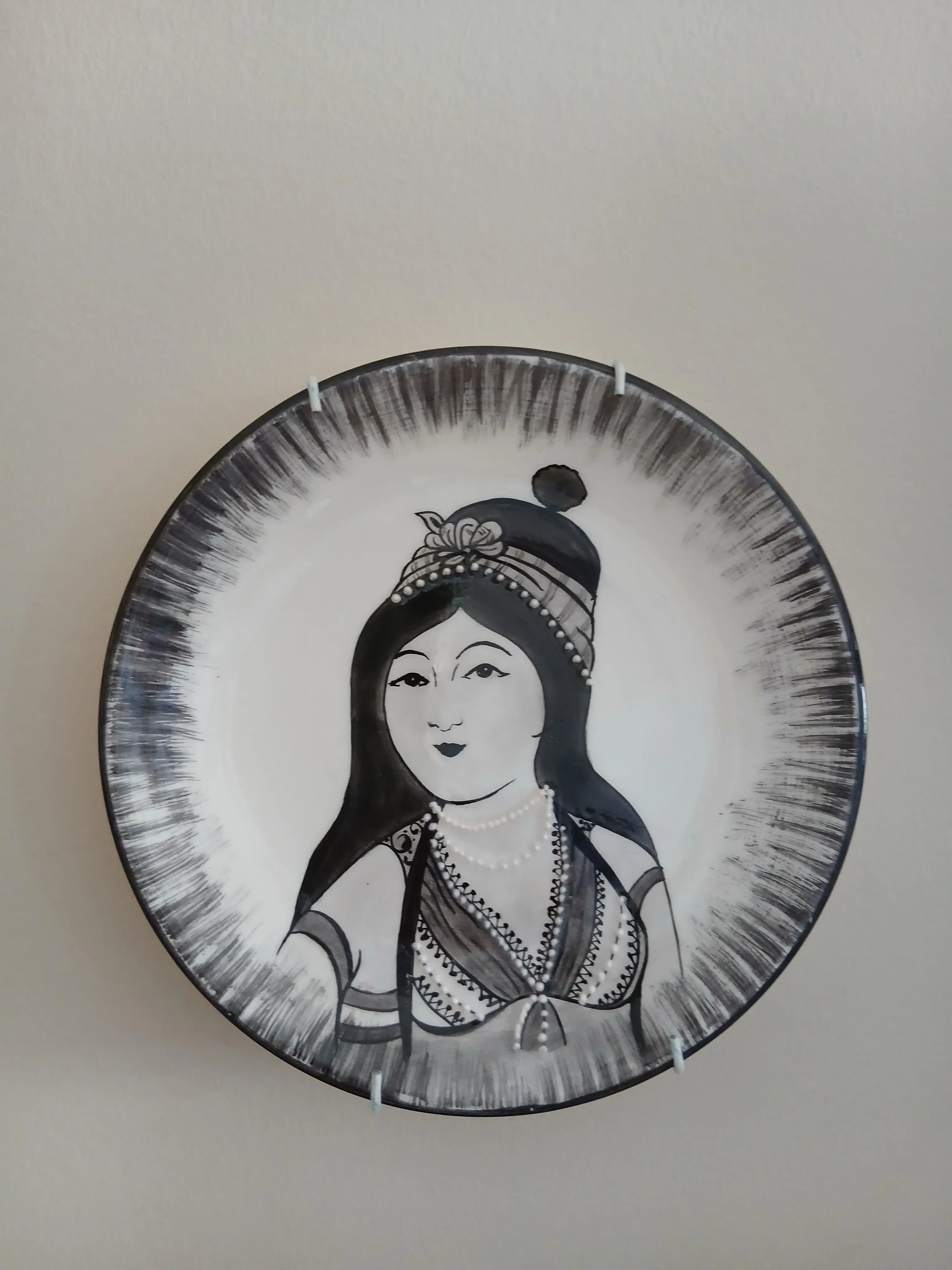 Ürün Özellikleri:Ürün Tipi: Çini duvar dekor tabağıTeknik: Sır altı tekniği ile el işçiliği dekorlama yapılmıştırEbat: 18 cmTasarım: Kadın figürü ile sanatsal bir görünümKullanım Alanı: Ev ve ofis duvar dekorasyonunda kullanılabilirEkstra: Duvar asma aparatı hediye olarak verilmektedir