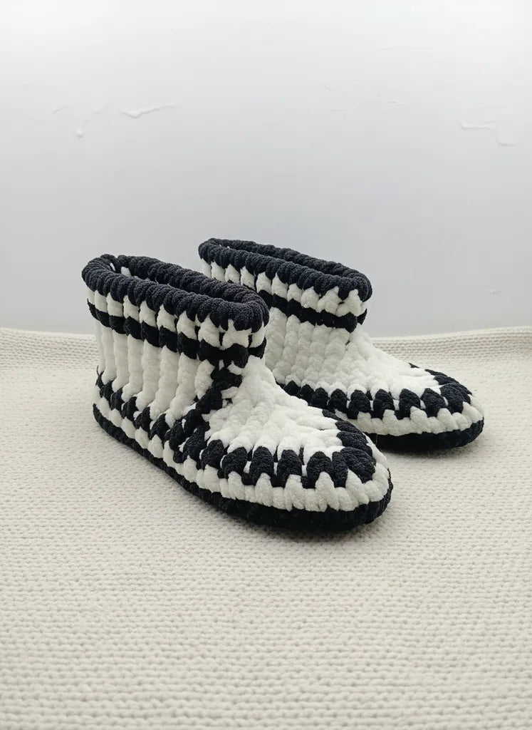 Siyah Beyaz Örgü Çeyizlik Patik Yumuşak Dokulu Kadın Ev Terliği