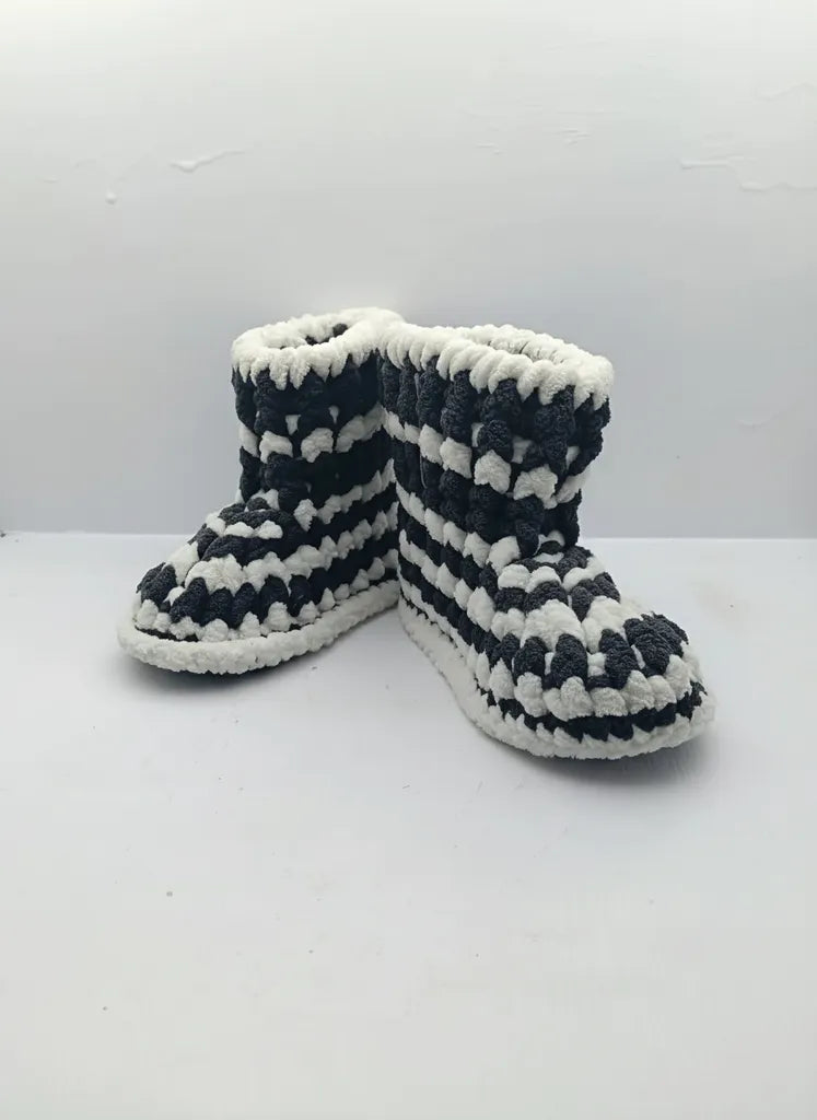 Siyah Beyaz Örgü Çocuk Patik Yumuşak ve Sıcak Ev Ayakkabısı 2122 Numara El Emeği