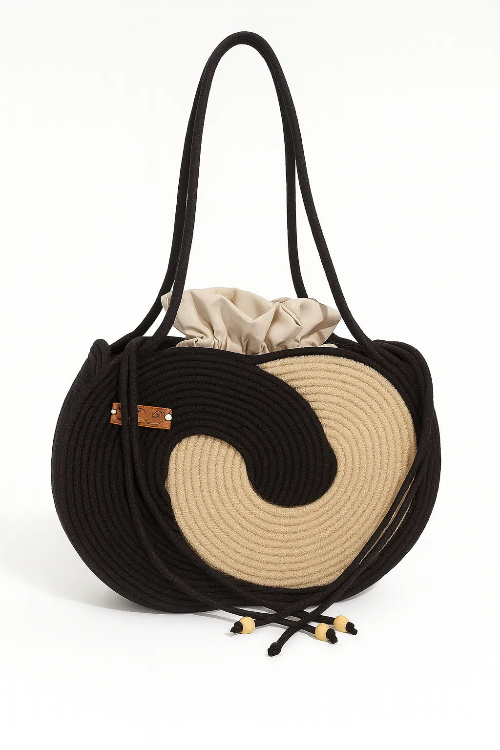 Sonsuzluk formundaki özgün tasarımıyla dikkat çeken bu büyük boy omuz çantası, şıklık ve fonksiyonelliği bir araya getiriyor. Siyah ve doğal tonlardaki uyumlu dokumasıyla hem günlük hem de özel kombinlerinize uyum sağlar. Geniş iç hacmi ve torba tipi astarı sayesinde eşyalarınızı düzenli ve güvenli şekilde taşıyabilirsiniz.Ürün Özellikleri:Renk: Siyah ve bej uyumluMalzeme: Hasır ip ve pamuk astarForm: Oval ve dalga detaylıSap Tipi: Omuz askılıKapanış: Büzgülü torba kapamaKullanım: Günlük, plaj ve hafta sonu çantası olarak ideal