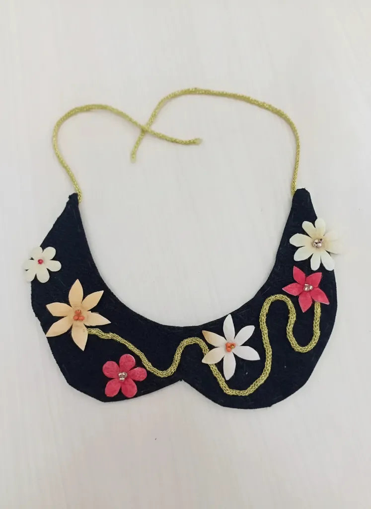 Siyah Keçe Kolye Renkli Çiçek Detaylı El Yapımı Tasarım