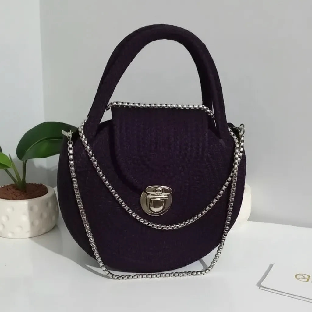 Siyah Örgü Omuz Çantası Zincir Detaylı El Yapımı