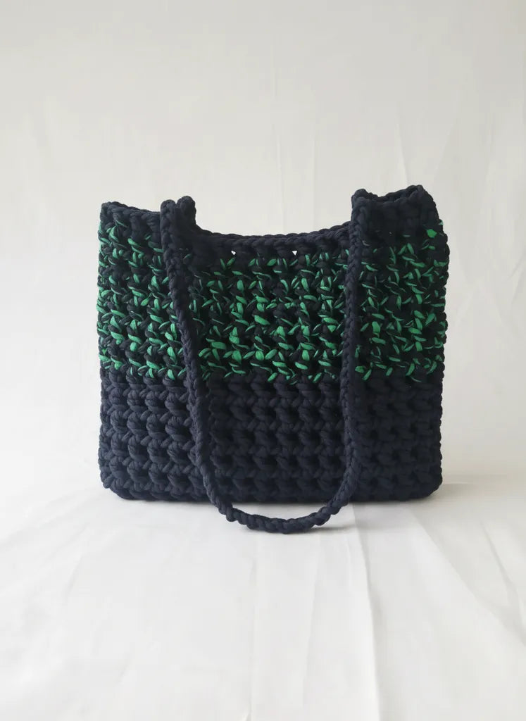 Siyah ve Yeşil Renkli İpten Örülmüş Omuz Çantası El Emeği