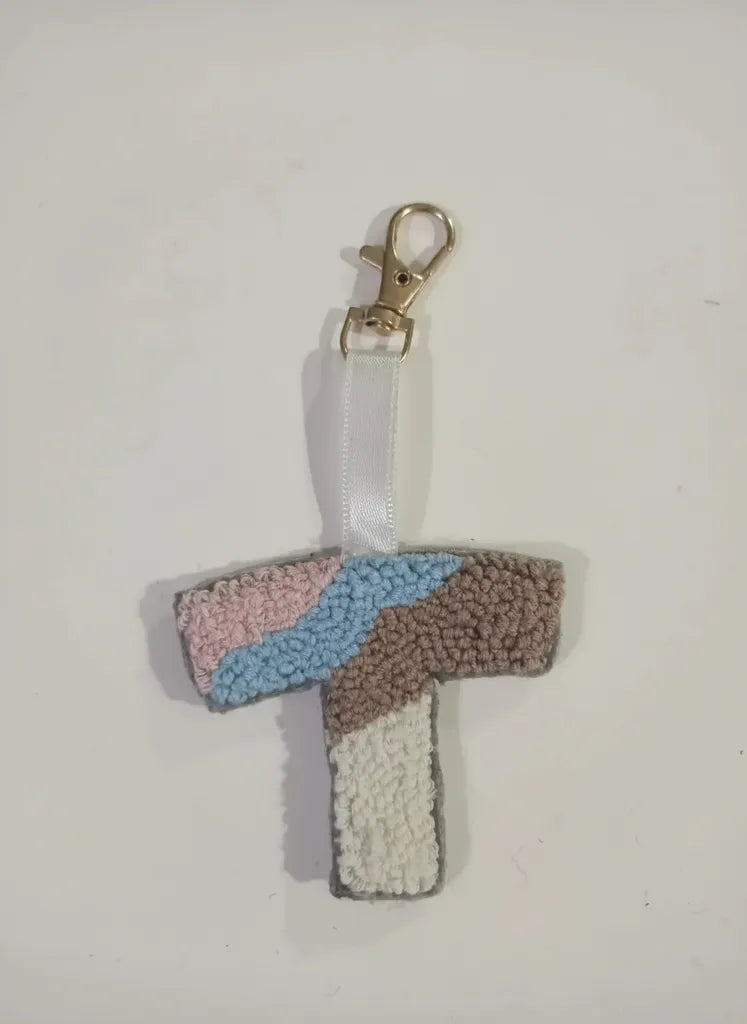 T Harfi Punch Nakışı Anahtarlık Çok Renkli El Yapımı Hediye