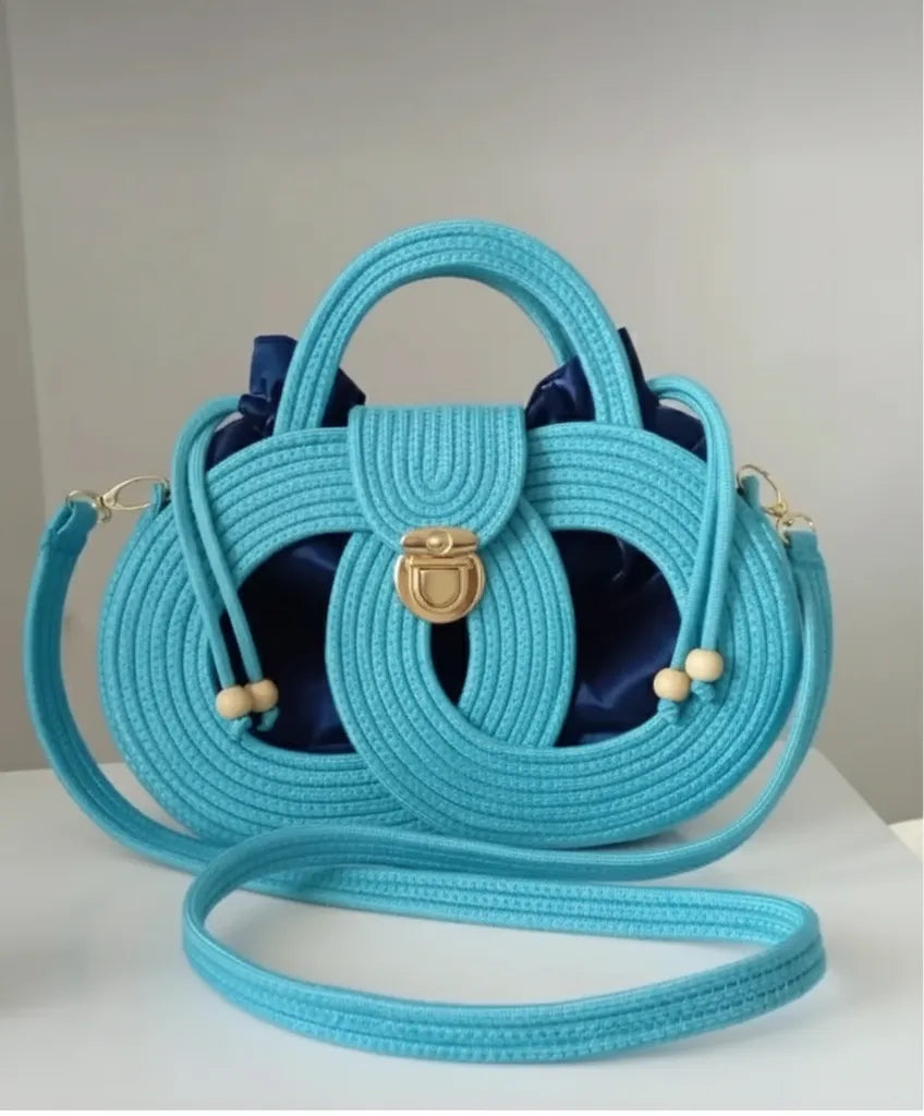 Turkuaz Halat İp Örme Omuz Çantası El Yapımı Tasarım