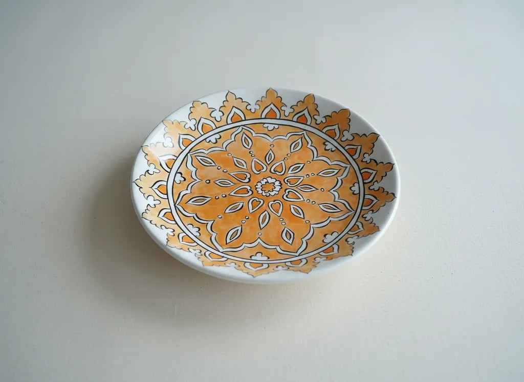 Turuncu Mandala Desenli Seramik Pasta Tabağı 18 cm Çapında