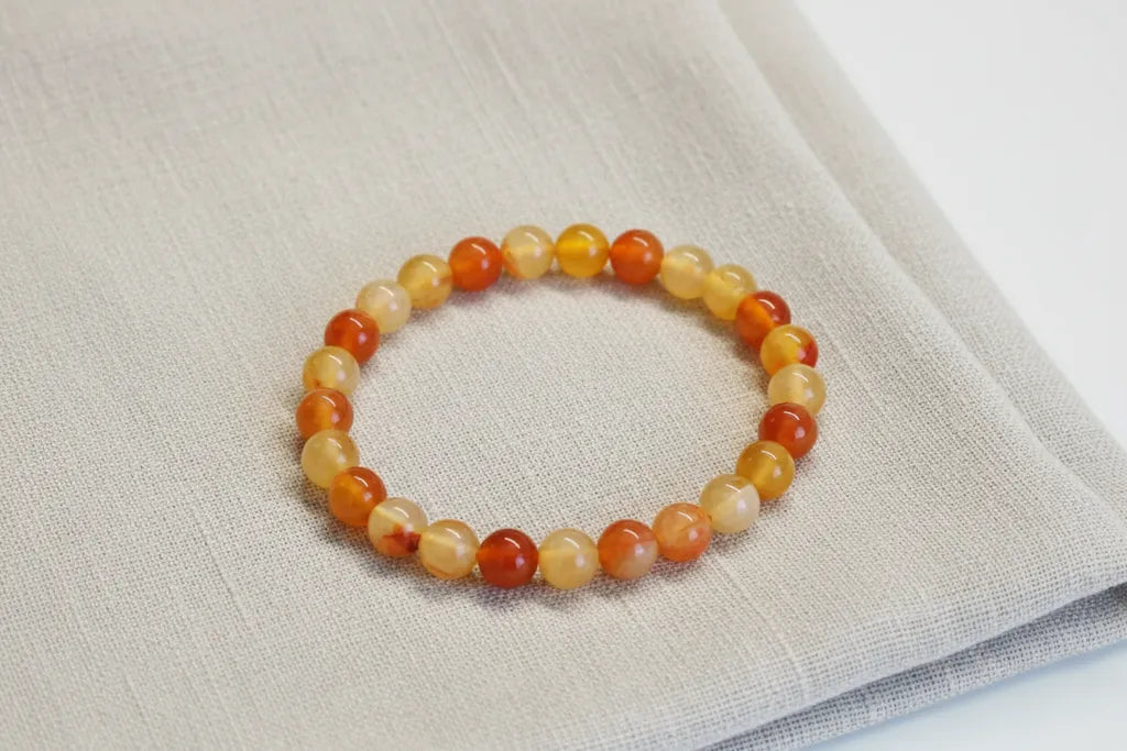 Turuncu ve Sarı Tonlarında Yuvarlak Doğal Taş Bileklik Şık Tasarım