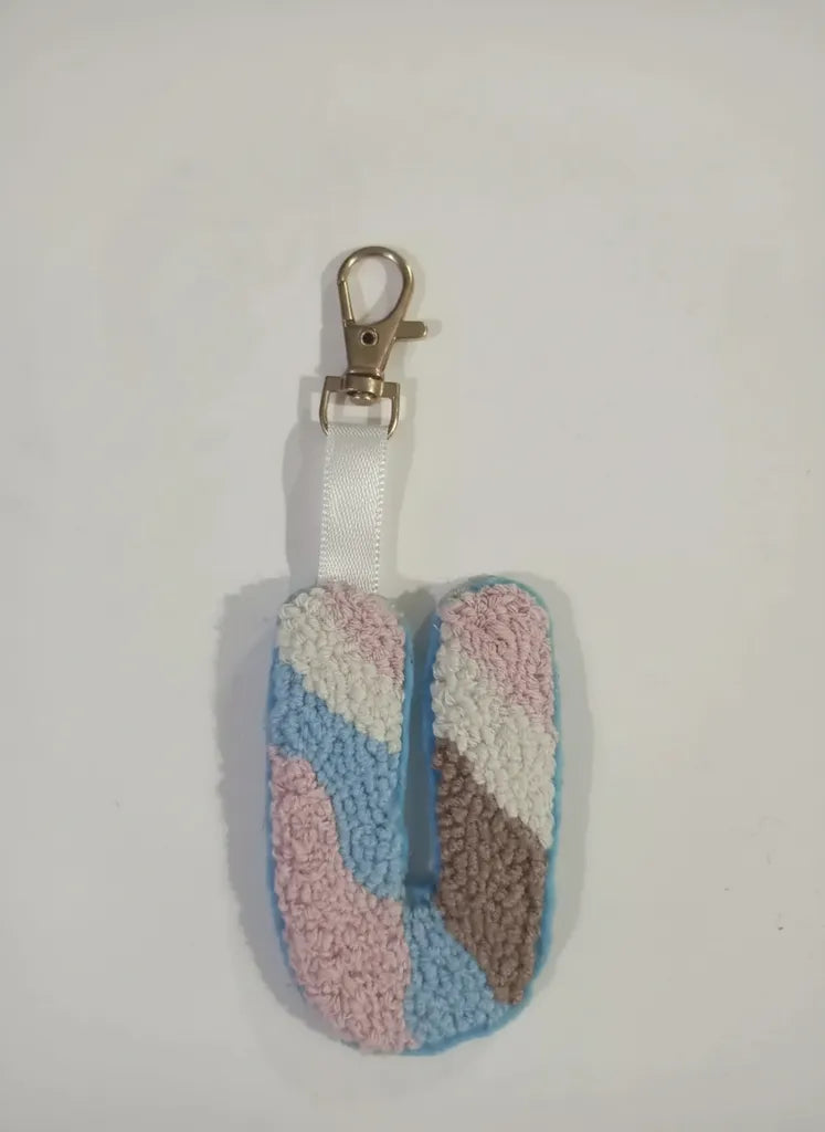 U Harfi Punch Nakışı Anahtarlık Pastel Renkli El Yapımı