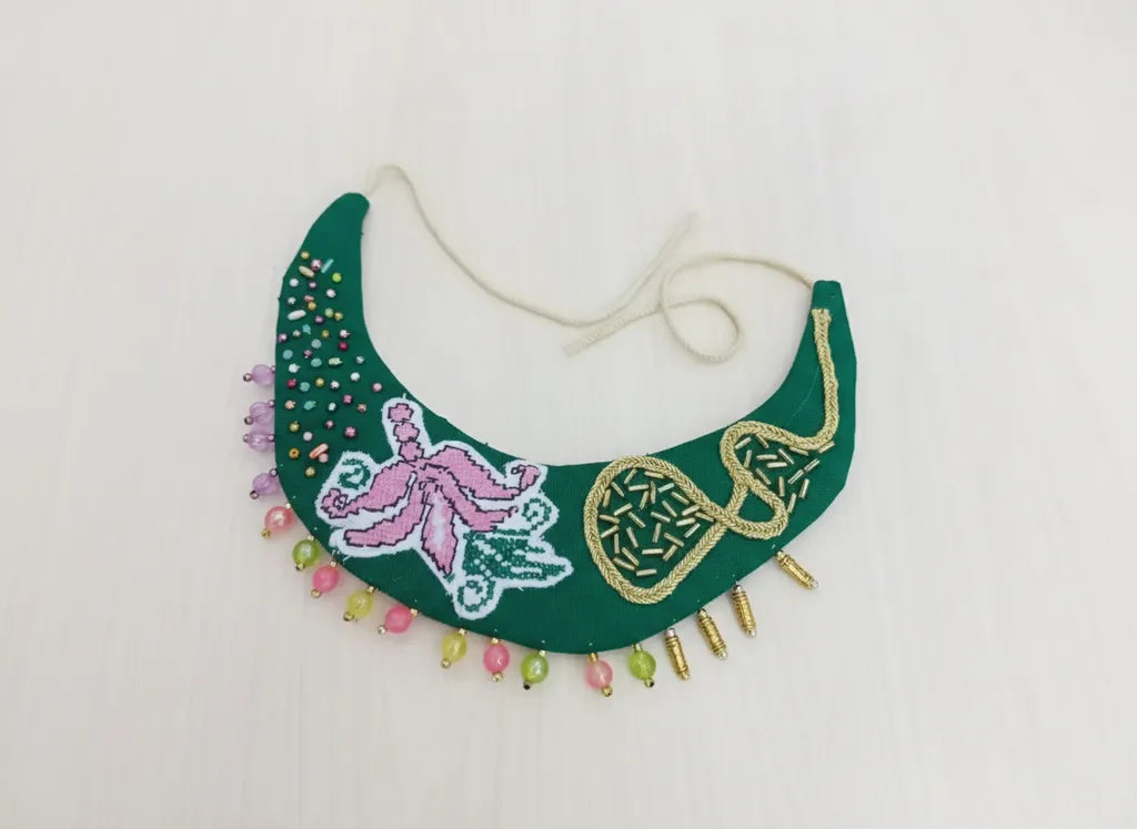 Yeşil Ay Şeklinde Nakışlı Kolye Ucu El Emeği Tasarım