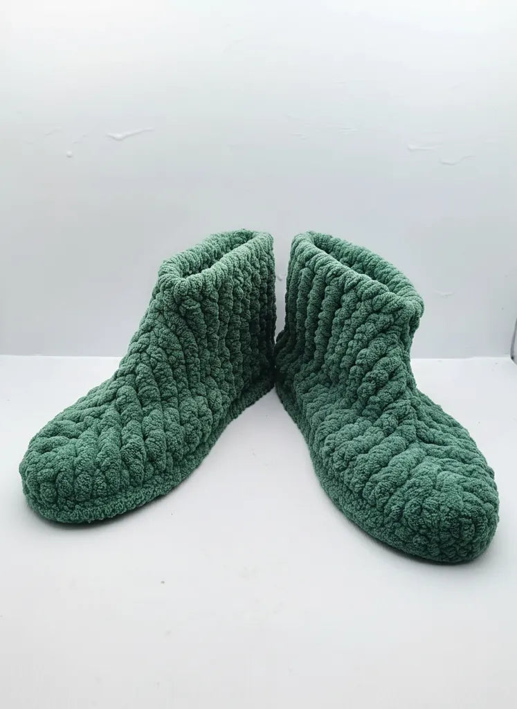 Yeşil Örgü Ev Botu Yumuşak Dokulu 3738 Numara El Örmesi
