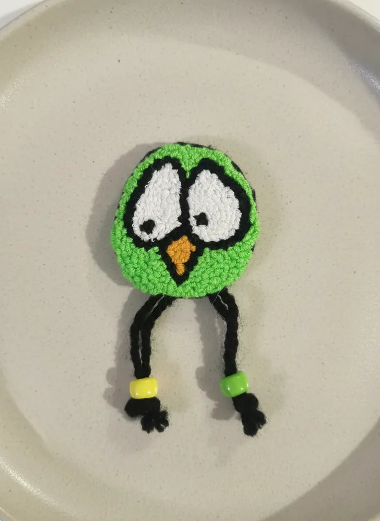 Yeşil Örme Kuş Figürlü Buzdolabı Magneti El Yapımı Dekoratif