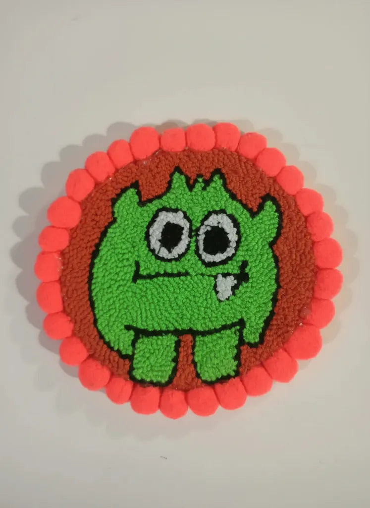 Yeşil Renkli Canavar Figürlü Bardak Altlığı Punch Nakışı El Yapımı