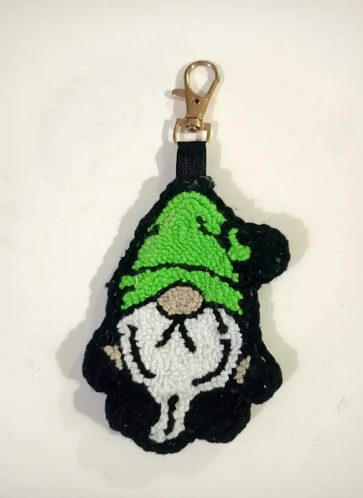 Yeşil Şapkalı Bahçe Cücesi Figürlü Anahtarlık El Yapımı